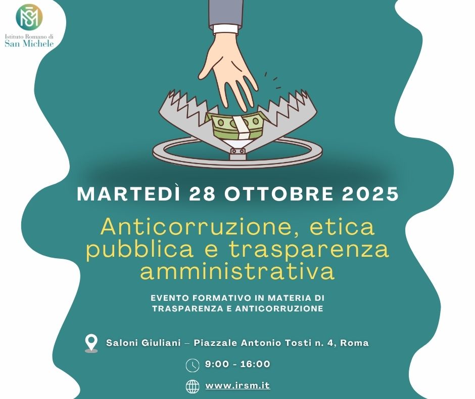 L’ASP Istituto Romano di San Michele, da sempre impegnato nella promozione dei valori di legalità, trasparenza e responsabilità amministrativa, organizza una giornata formativa dedicata ai temi dell’anticorruzione, dell’etica pubblica e della trasparenza amministrativa.