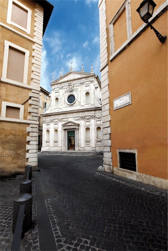 Situata tra Via dei Funari e Via Michelangelo Caetani, la Chiesa di Santa Caterina dei Funari affonda le sue radici nel periodo medievale, pur presentando l’attuale configurazione architettonica risalente alla fine del XVI secolo.